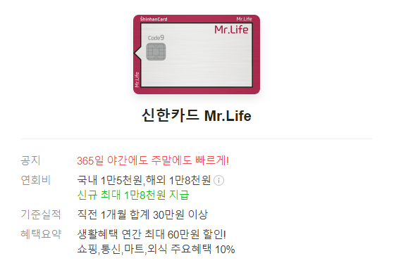 신한카드 Mr.Life 카드