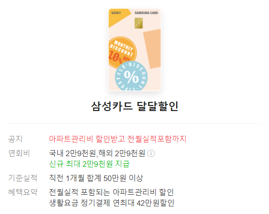 삼성카드 달달 할인